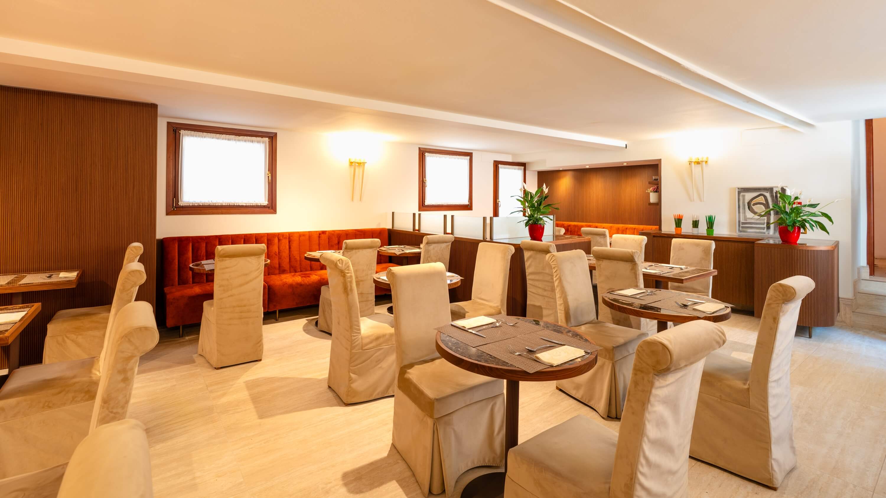 In estate, la colazione viene servita in terrazza, al primo piano dell’hotel. All’aria aperta, tra fiori e giochi di luce, il mattino inizia con un’esplosione di bellezza.