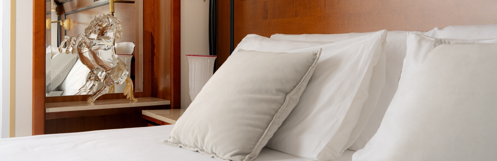 Hauts plafonds décorés, lustres en verre de Murano, peintures et gravures de peintres internationaux sont des détails qui restent dans le cœur. Ce qui vous donne le sentiment de faire partie d’une ville consacrée à l’art et à la beauté. La vue sur le canal est un ravissement pour les yeux, et la lumière qui pénètre par les grandes fenêtres révèle une à une les décorations de cette suite romantique.